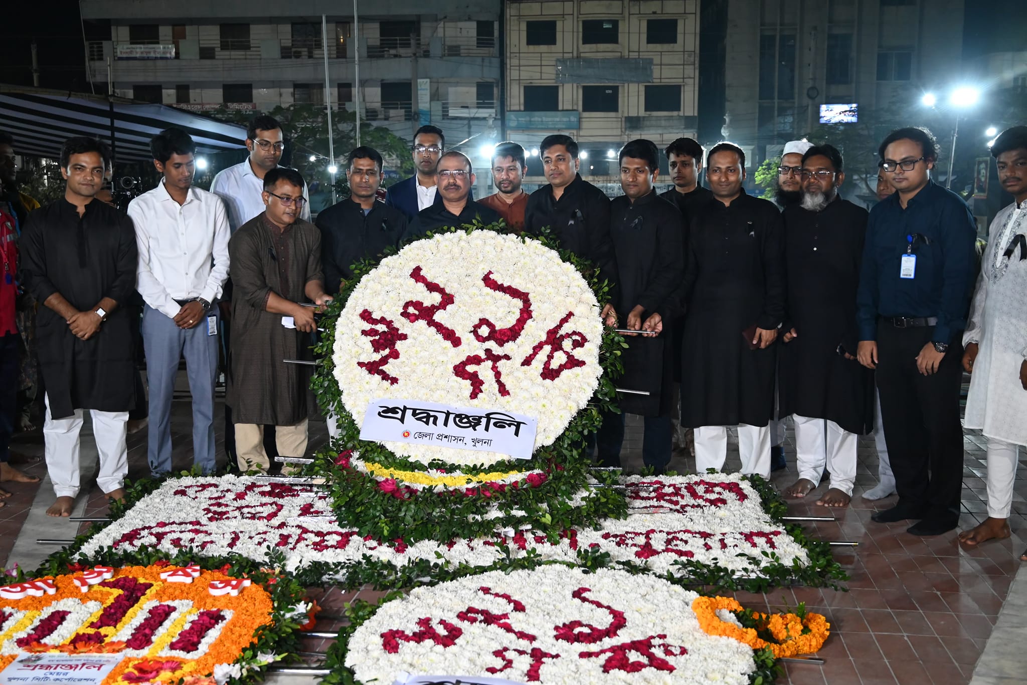 ২১ ফেব্রুয়ারি, ২০২৪ খ্রিস্টাব্দ রোজ বুধবার, রাতের প্রথম প্রহরে খুলনা জেলার সুযোগ্য জেলা প্রশাসক ও বিজ্ঞ জেলা ম্যাজিস্ট্রেট খন্দকার ইয়াসির আরেফীন এর নেতৃত্বে খুলনা মহানগর ও মুক্তিযোদ্ধা কমান্ড কাউন্সিলের বীর মুক্তিযোদ্ধাগণ শহিদ বেদীতে পুষ্পস্তবক অর্পণের মধ