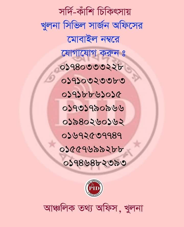 সর্দি-কাঁশি চিকিৎসায় খুলনা সিভিল সার্জন অফিসে মোবাইলে যোগাযোগ করুন